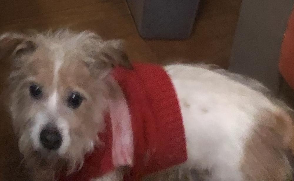 Pet Description:Theo was a jack terrier mix , he had a red sweater on , and was white with tan spots |