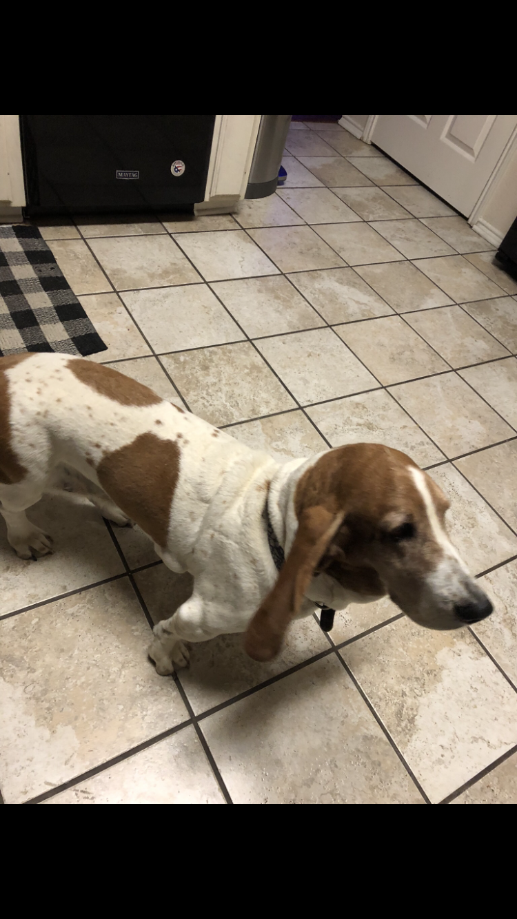 Pet Description:11 yr old Bassett hound barks all the time. Has a very noticeable knot sticking out on right side behind front leg. |
