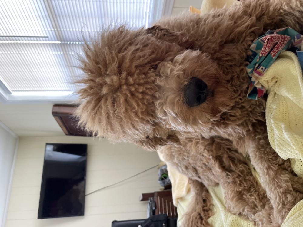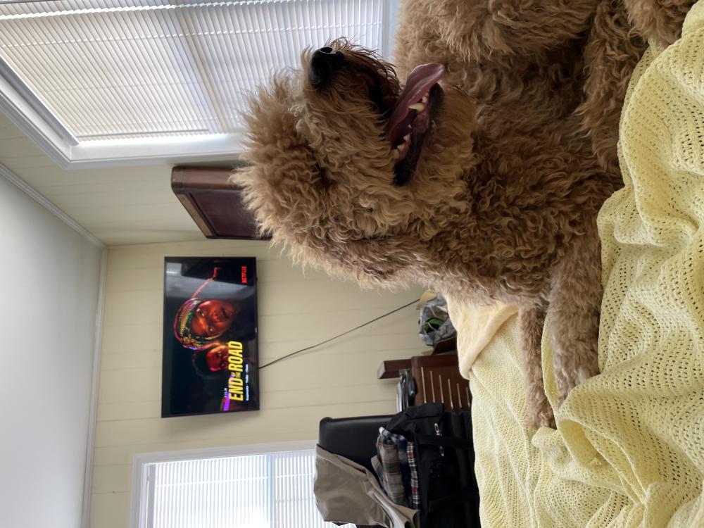 Pet Description:One year old golden doodle, that is an inside dog and hair is long, and if you can’t see his eyes, he is golden and very friendly |