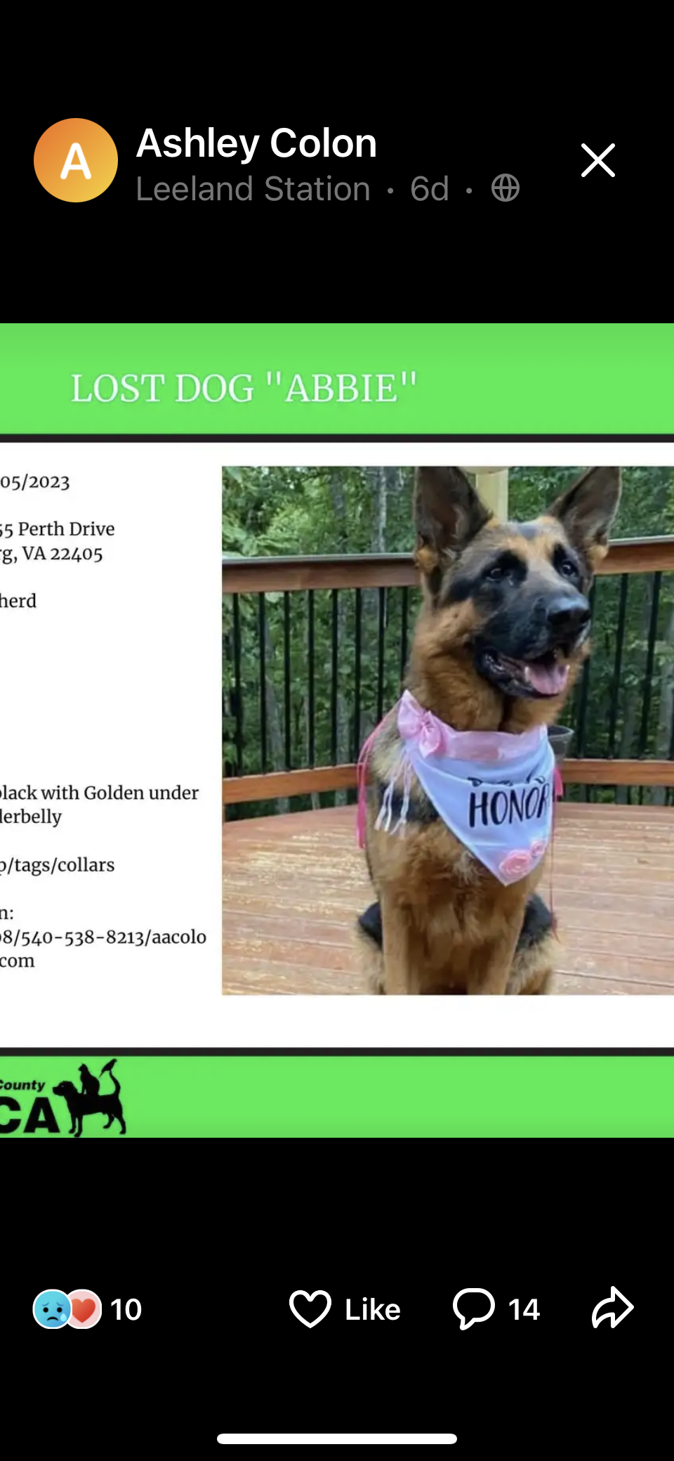 Pet Description:Medium female German Shepherd lost 1/5 from Leeland Station neighborhood |