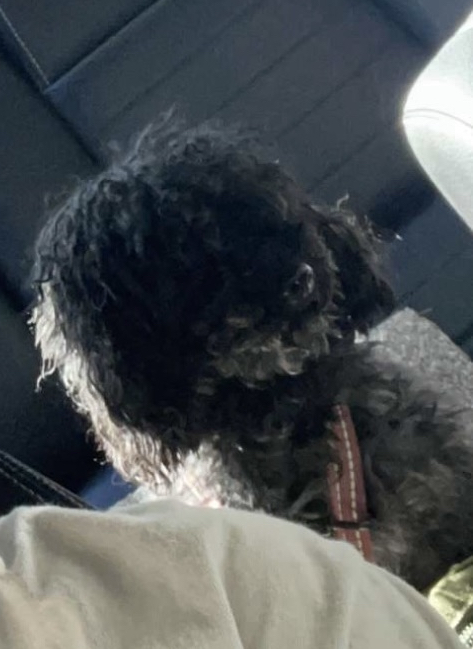 Pet Description:Miniature Poodle, Goes by the name Chino, has curly black fur |