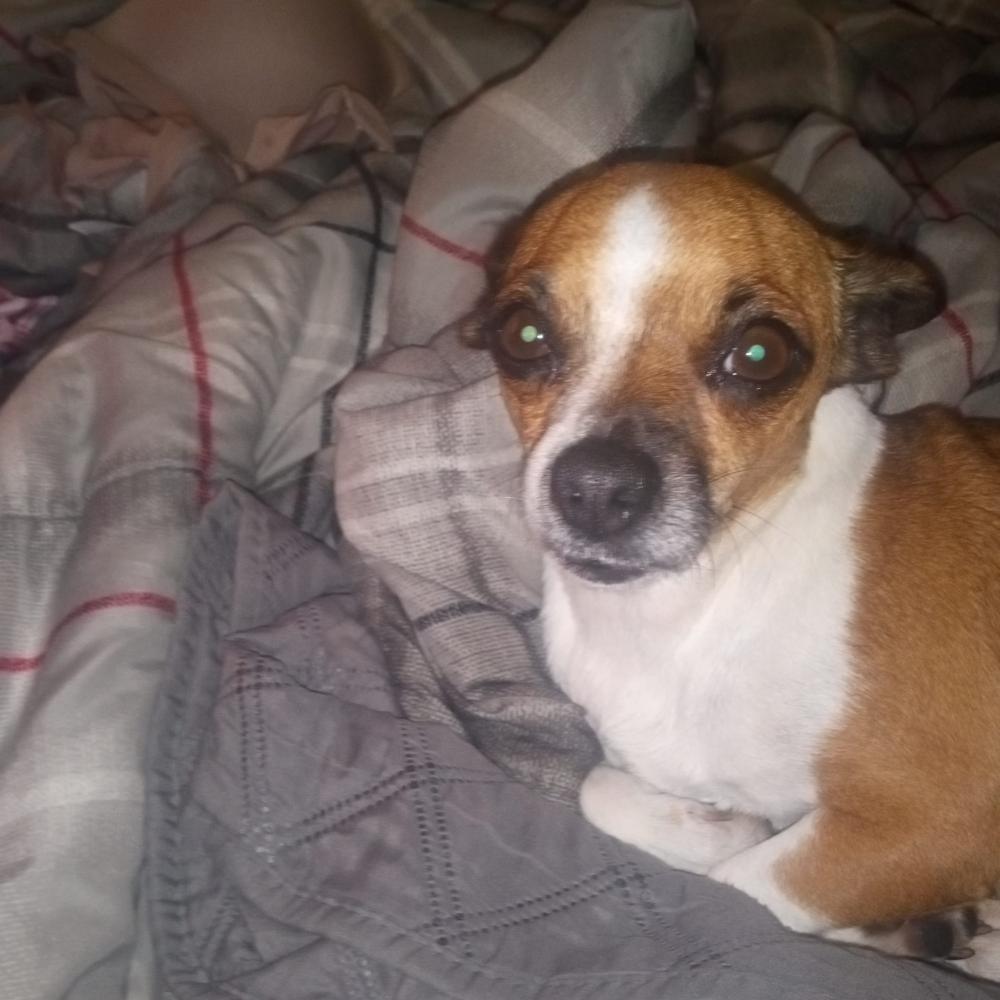 Pet Description:very sweet, brown and white female chihuahua. large ears, half black whiskers and half white. all four feet are white and runs on only three legs. |