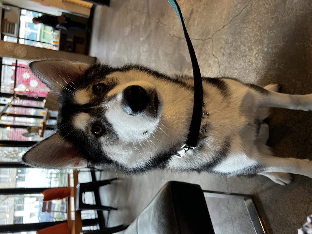 Pet Description:Black and white 8-mo old husky puppy with a prone collar. Extremely friendly to everyone and anything. She hardly barks. Weighs 45 lbs. |