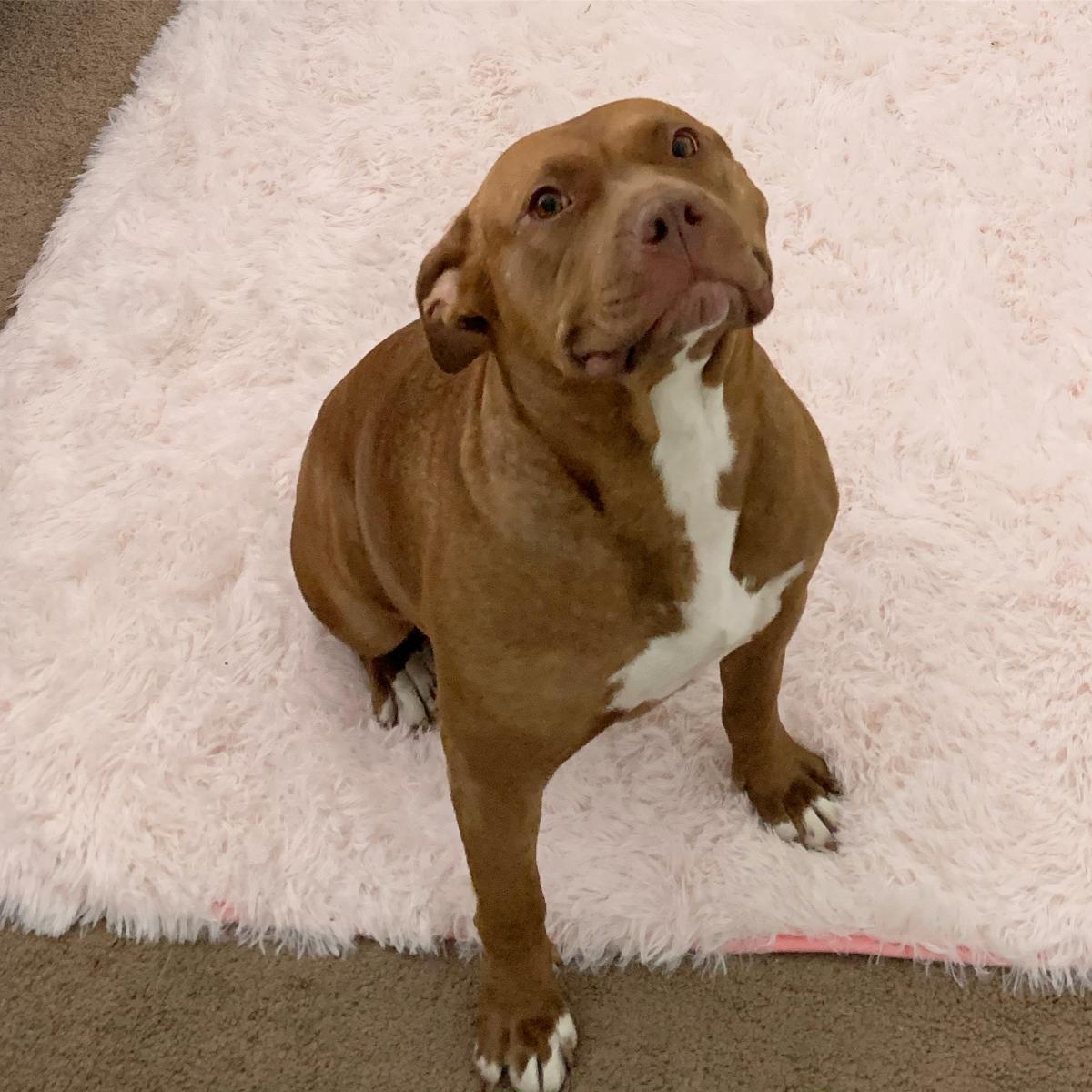 Pet Description:Stocky, red nose pitbull, 60 pounds, flower collar and pink leash, brown eyes. She is very friendly and sweet. Name is pronounced Ca-meela |