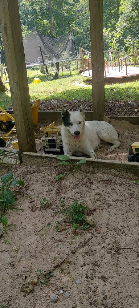 Pet Description:Poncho is a white heeler with black speckled and one black ear. He has a docked tail. HE IS DEAF. |