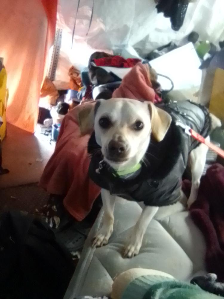 Pet Description:He is 2 years old I've had him since he was born he's very playful and loving he's kind of shy of strangers he has a black leash on and a gray and blue krugo harness on with a lime green collar with white Bones on it and a bell attached to the collar |