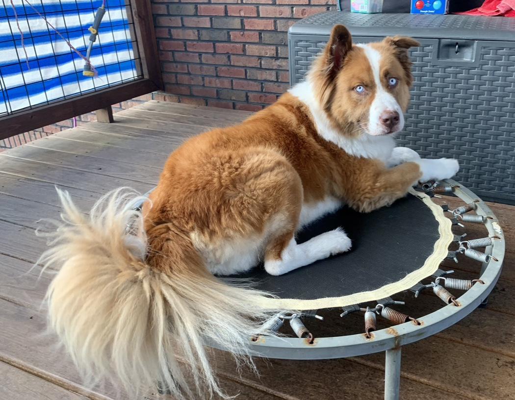 Pet Description:85 lb male. Red and White Husky mix with blue eyes |