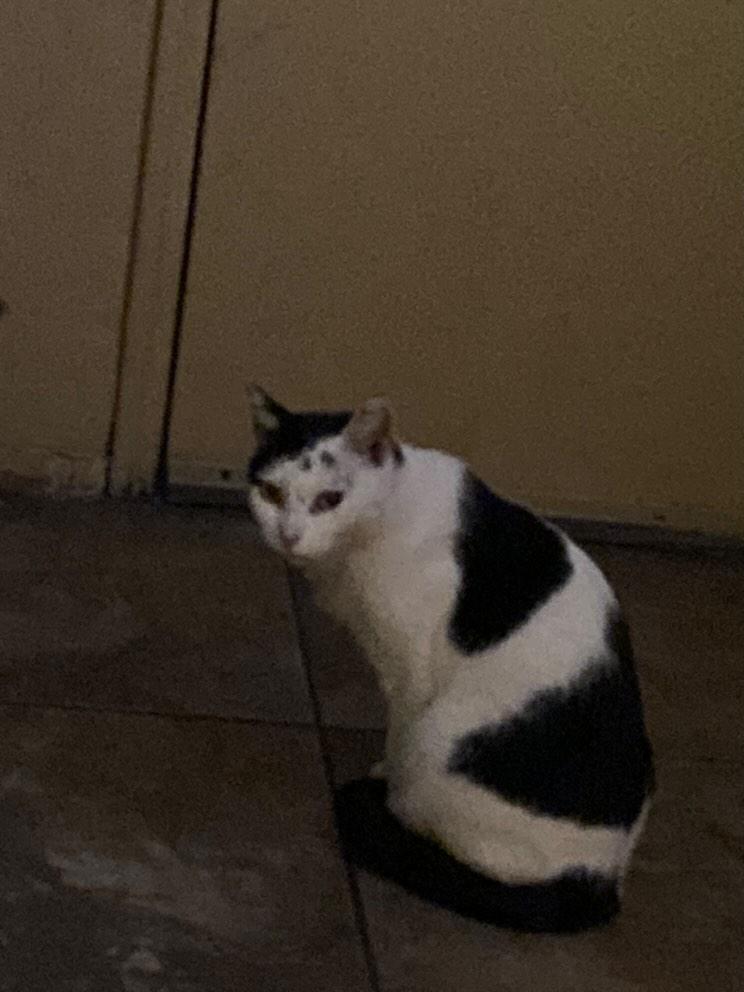 Pet Description:Black and white, she's shy to people. Please help us ?? Black and WhiteName - OreoShe's a big cat |