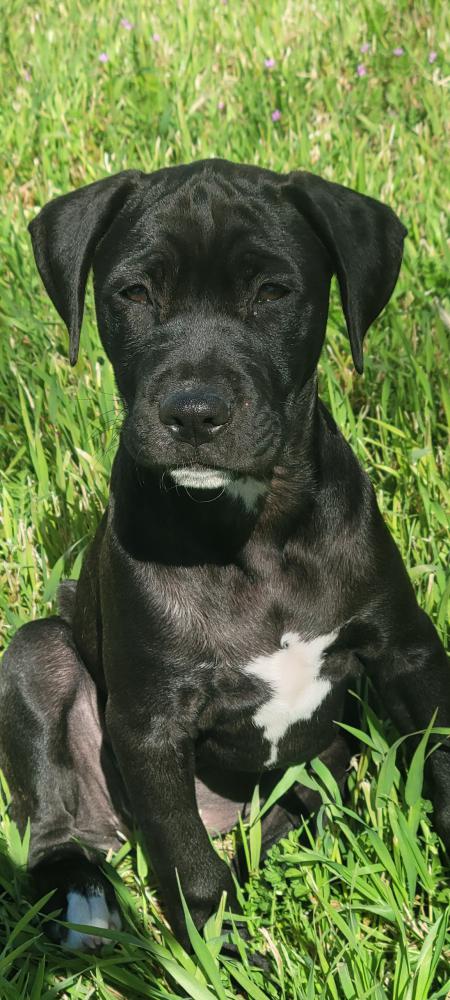 Pet Description:Zuri is a Mastiff /Labrador mix. She is all black with a white mark on her chin that kind of looks kind of like a goatee. She also has a large white patch on her chest. |