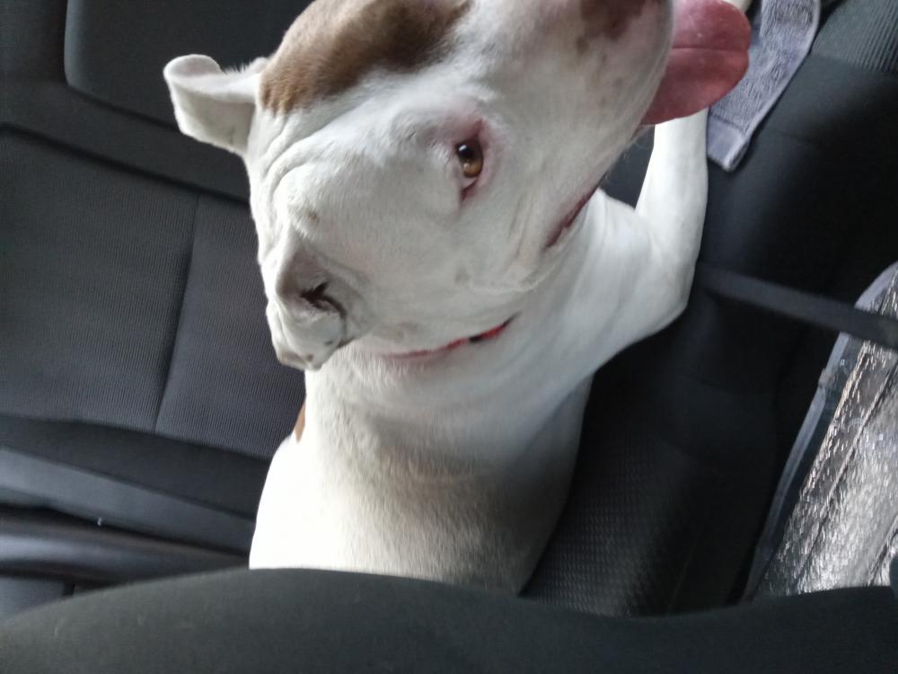 Pet Description:He is a pit bull mix possibly with retriever. His coat is white with large tan spots, he's very sweet and knows his commands. He is at the Santa Monica City Animal Shelter as of 4/8/23. He is microchipped but the owner never contacted me. |