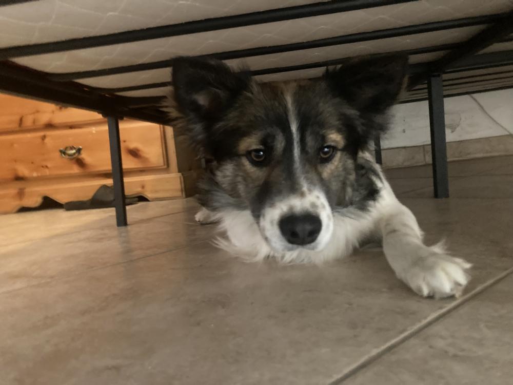 Pet Description:Fluffy dog, white with brown spots . Looks like he has a bad hair cut. Very friendly, very talkative . Not neutered. About a year old. |