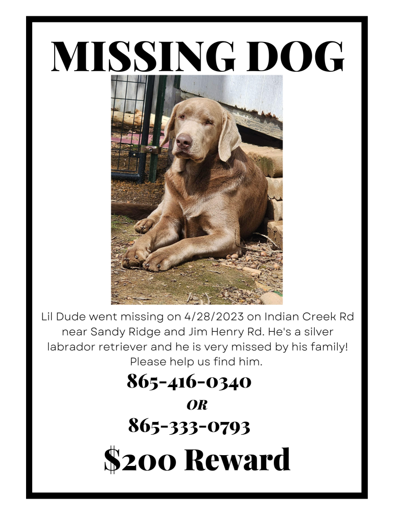 Pet Description:Male Silver Lab, roughly 90lbs. Unaltered. |