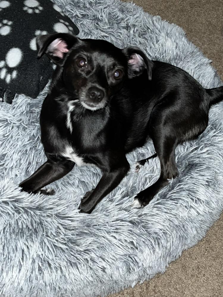 Pet Description:black chihuahua, white back toes and chest. 9 pounds and female |