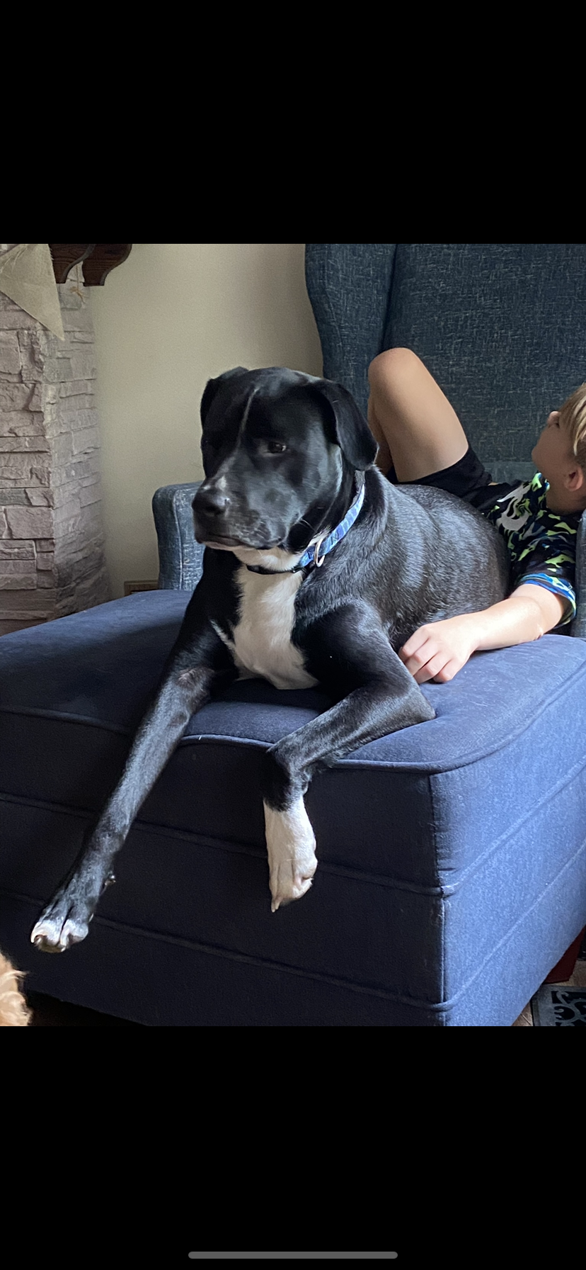 Pet Description:Barkley is a black lab mix with white markings. Should have a blue collar on. Extremely friendly. |