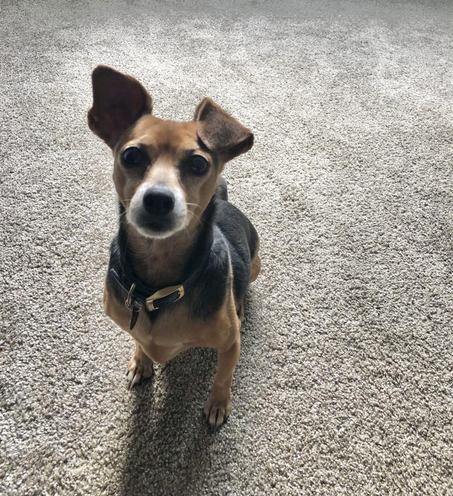 Pet Description:Brown and tan chihuahua wiener dog mix. He has a bow tie collar. He knows his name but is a little skittish, but he is very food motivated. |