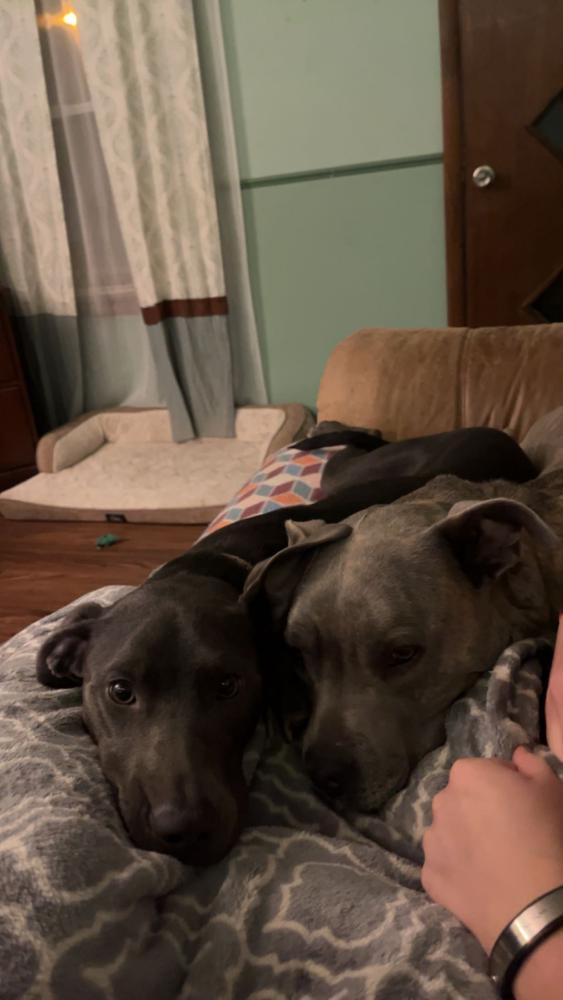 Pet Description:She is medium sized, traveling with a brindle pittie named Nala, both are super sweet and love pets and treats. |