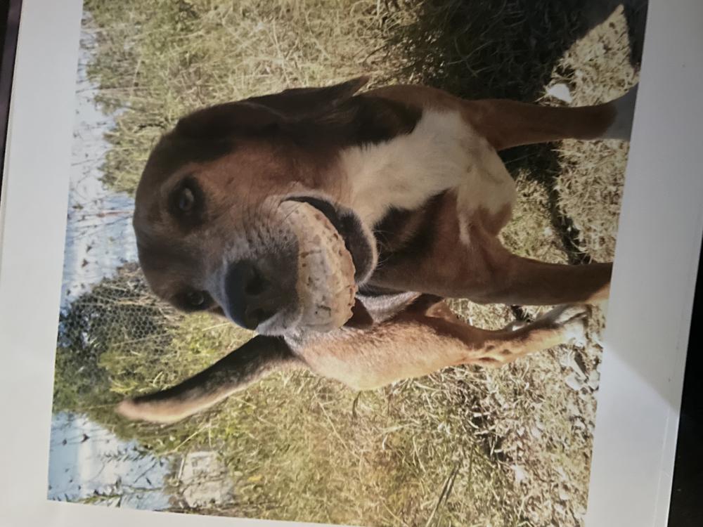 Pet Description:Small beagle brown and black w white around mouth and down chest. He has an extra dew claw on one foot |