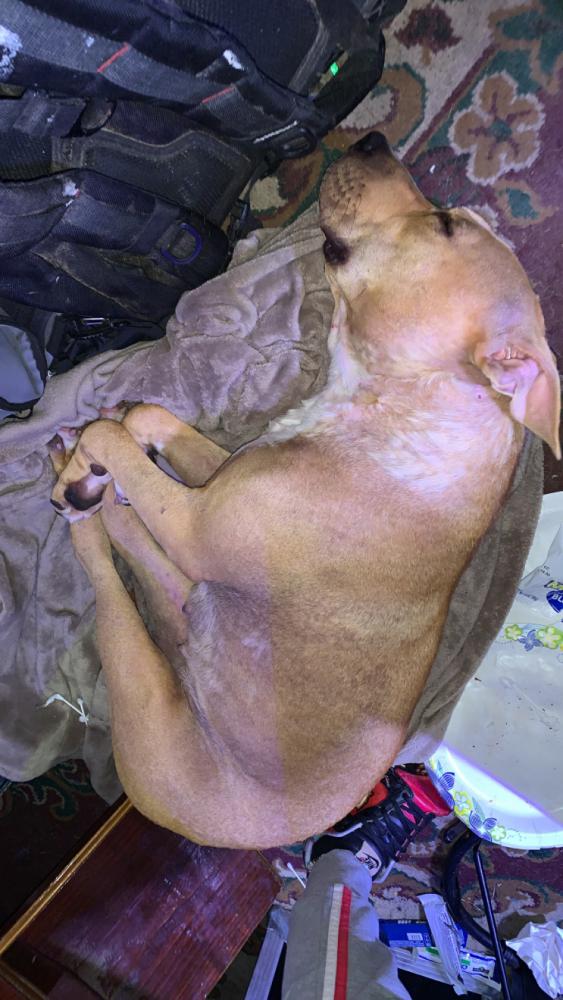 Pet Description:She looks like she could be mixed with lab but has the body of a pit she’s not even a year old yet but she might reach 80 pounds she is the sweetest dog alive |
