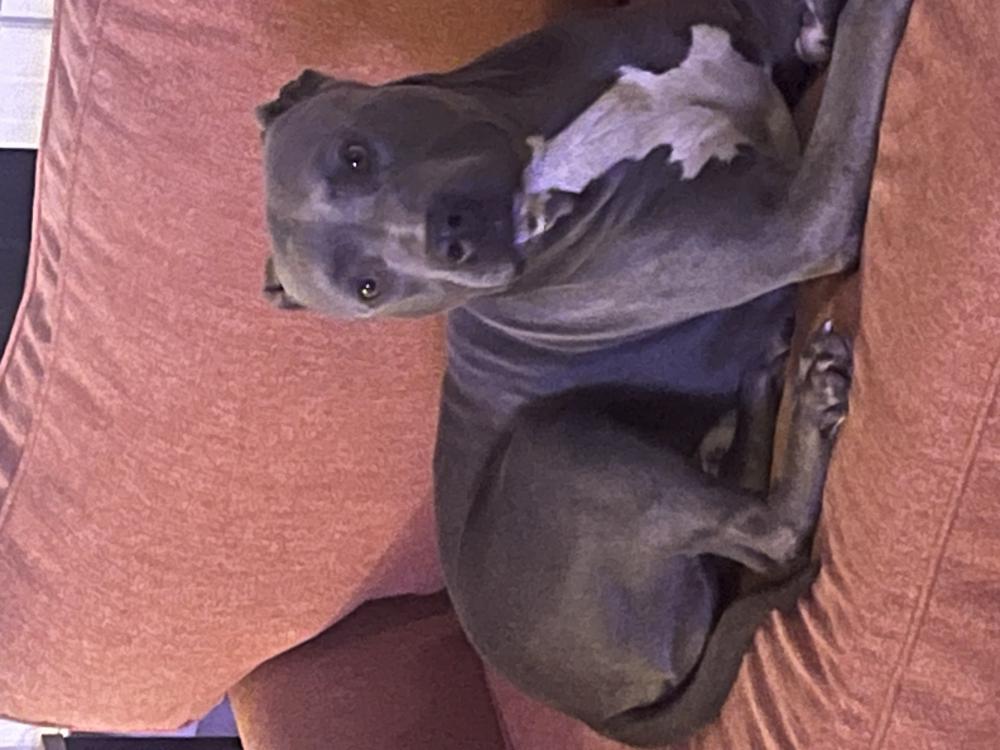 Pet Description:Male pit bull, gray with white chest and toes. Fixed. No collar. Friendly but scared. Please help us find his family! |
