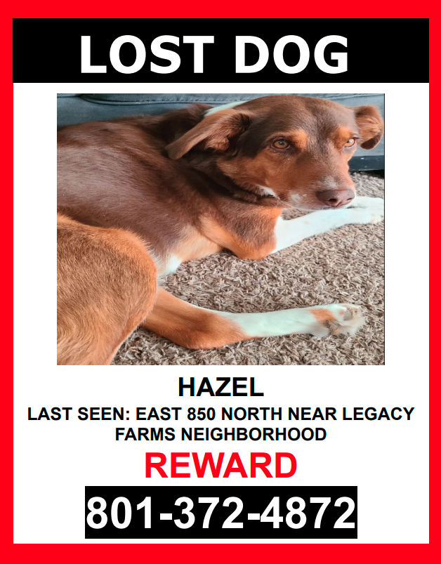 Pet Description:MISSING SINCE 6/17/23 AT 10:30 AM HAZEL is a FEMALE, BROWN/TAN AND WHITE , AUSTRALIAN SHEPHERD MIXED who escaped and was last seen near EAST 850 NORTH IN THE LEGACY FARMS NEIGHBORHOOD IN SPANISH FORK. HAZEL is wearing HER COLLAR with tags and IS microchipped. If you see HAZEL please DO NOT CHASE HER. HAZEL is really friendly. PLEASE CALL OR TEXT ONLY. 801-372-4872$$ Reward $$ |