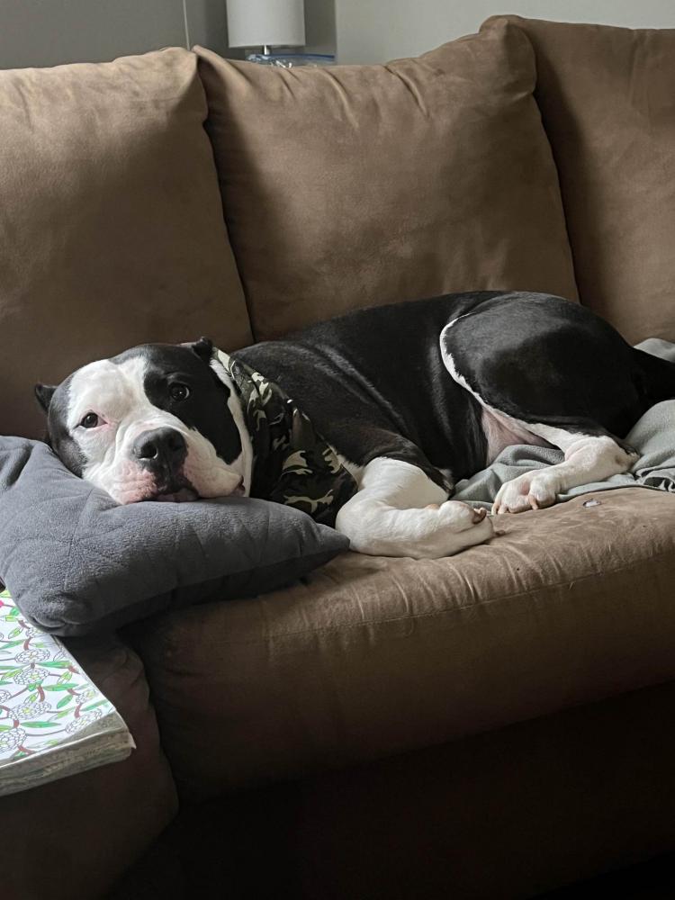 Pet Description:HE WAS STOLEN! PLEASE HELP! He is short/medium build and stocky, he is white with black. Half his face is whit and the other half black like his ears. He was last seen with roommates who left and have yet to come back and return him. He was wearing a blue leather colpr with blalc spikes. Hes very loving, and sweet but alsl comes off shy and timid at first. We rescued him from a shelter to give him a forever home, i never couldve imagined someone doing something so cruel. |