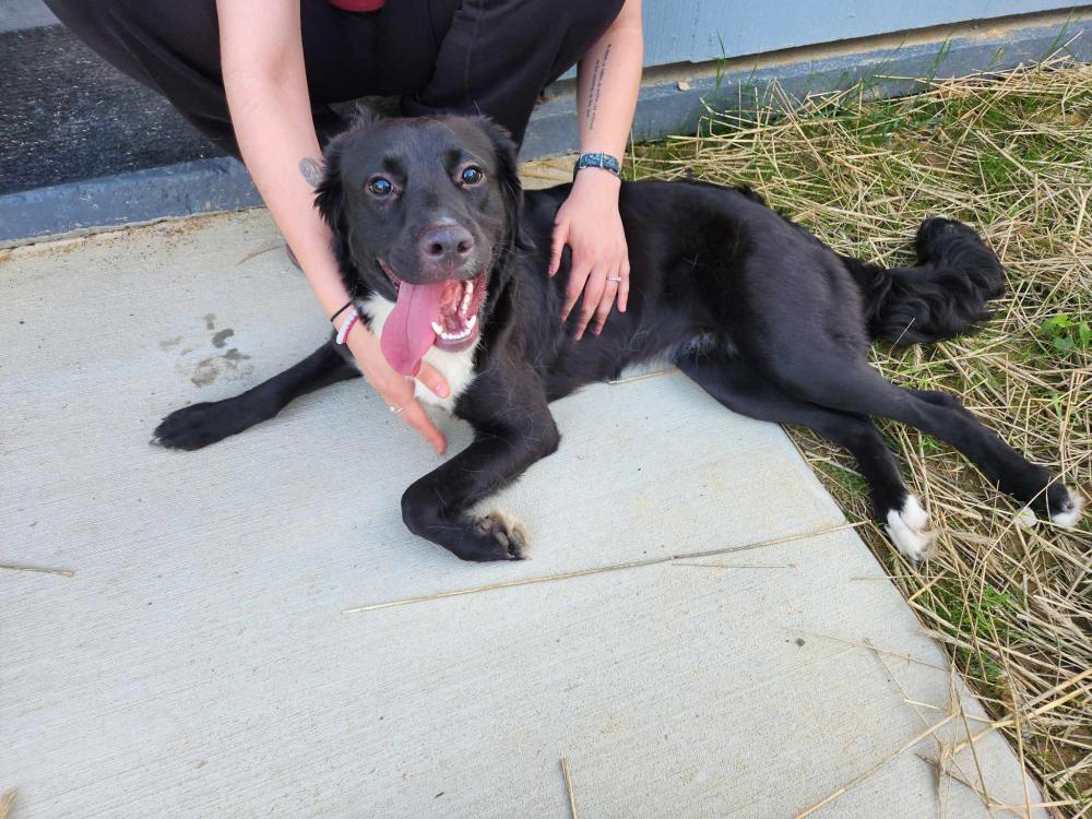 Pet Description:Very sweet young girl, no collar, mostly black with a little white. |
