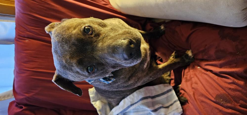 Pet Description:Female possible pit or pit mixed. Has had puppies and looks to be nursing. Very sweet |