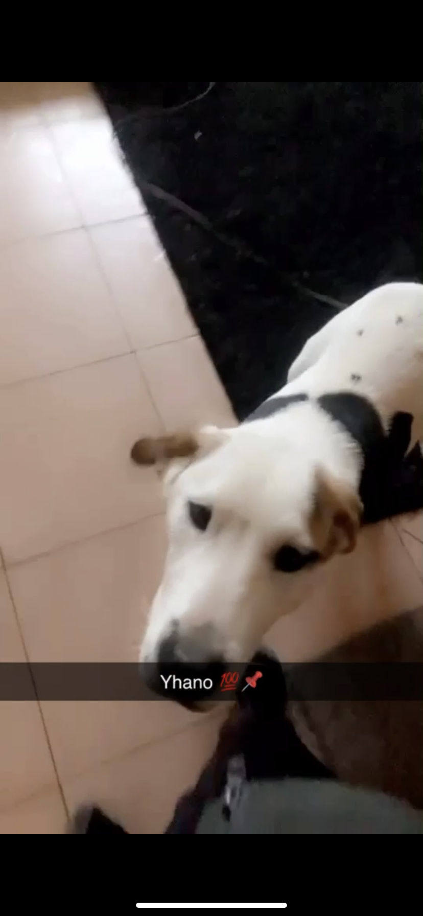 Pet Description:Has brown spot on his ear and tail .. a few black patches |