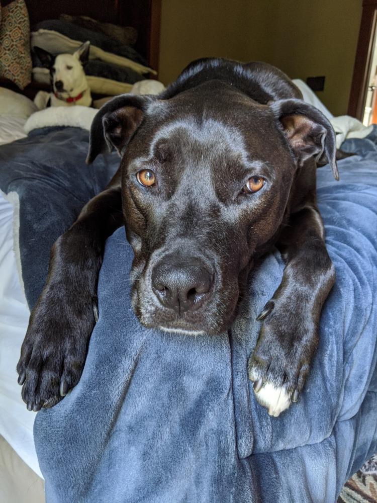 Pet Description:Black pitbull with white stripe down chest. 80 pounds male. |