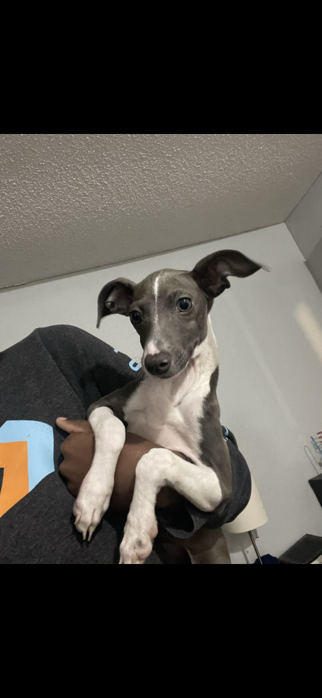 Pet Description:Smallish grey and white male Italian greyhound. He was stolen from me. |