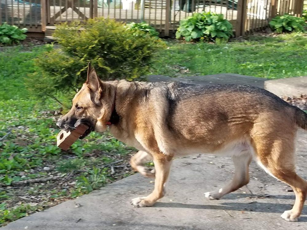 Pet Description:13YO Gold German SHepherd. Red Collar with name and phone#. Bad hips. Friendly |