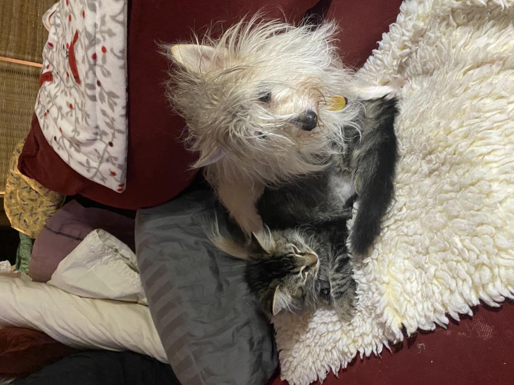 Pet Description:Pom and terrier mix. Long hair, blond, matted on rear end; very shy , trembles when afraid. |