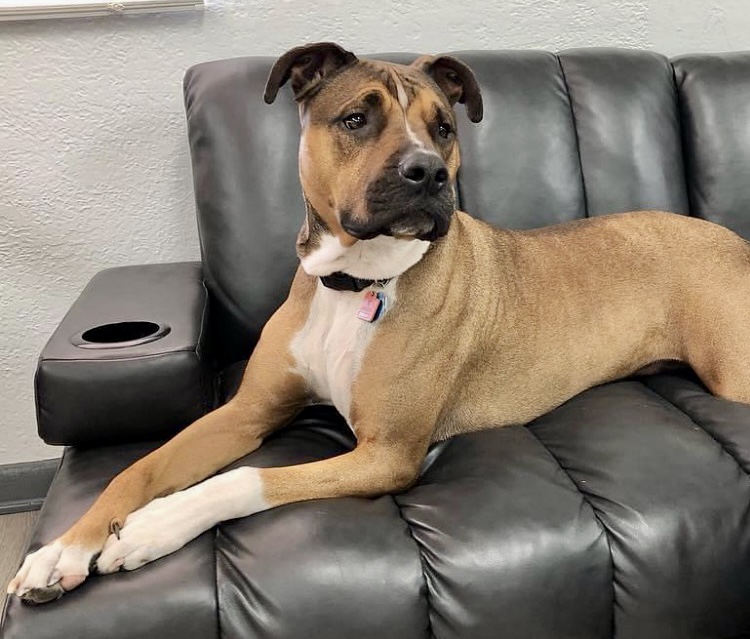 Pet Description:Duke is a pit-boxer mix. 90 pounds. Brown with white chest and white paws (white is longer on left leg). Friendly but may be shy. |