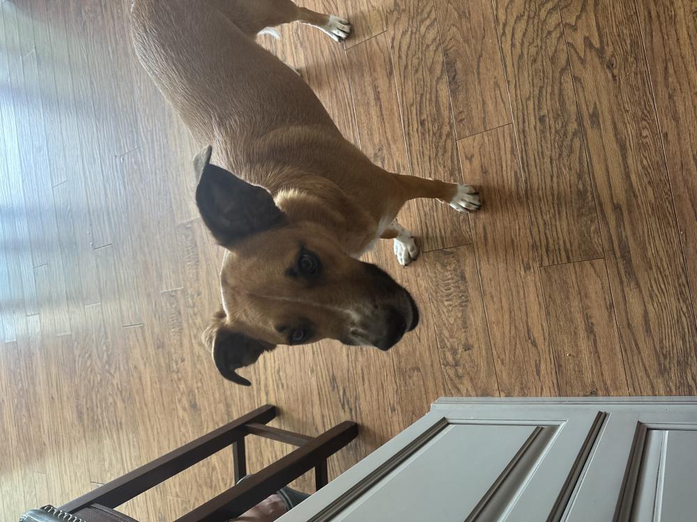 Pet Description:Friendly dog named Kodak. Mixed breed. Medium build. Very sweet. White tips on paws |