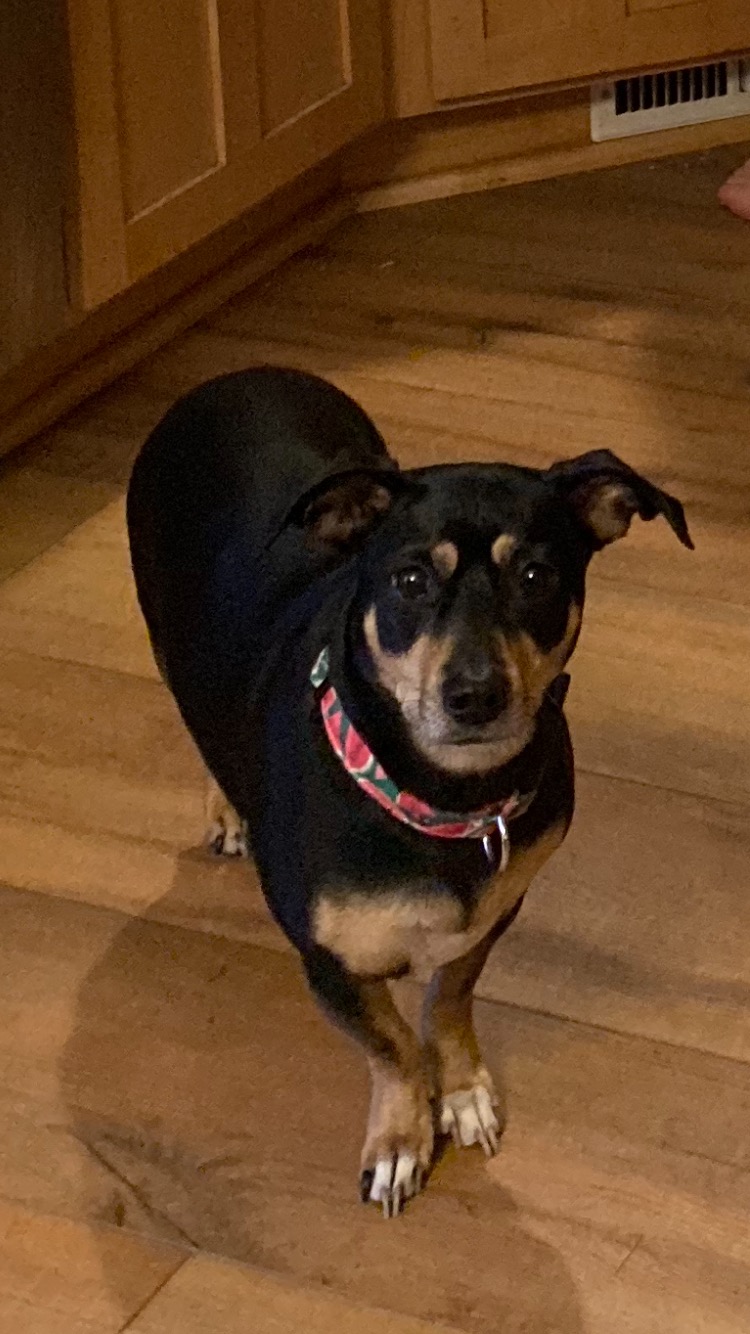 Pet Description:Small Black Dachsund, very nervous, doesn't have a tag but will respond to her name. |