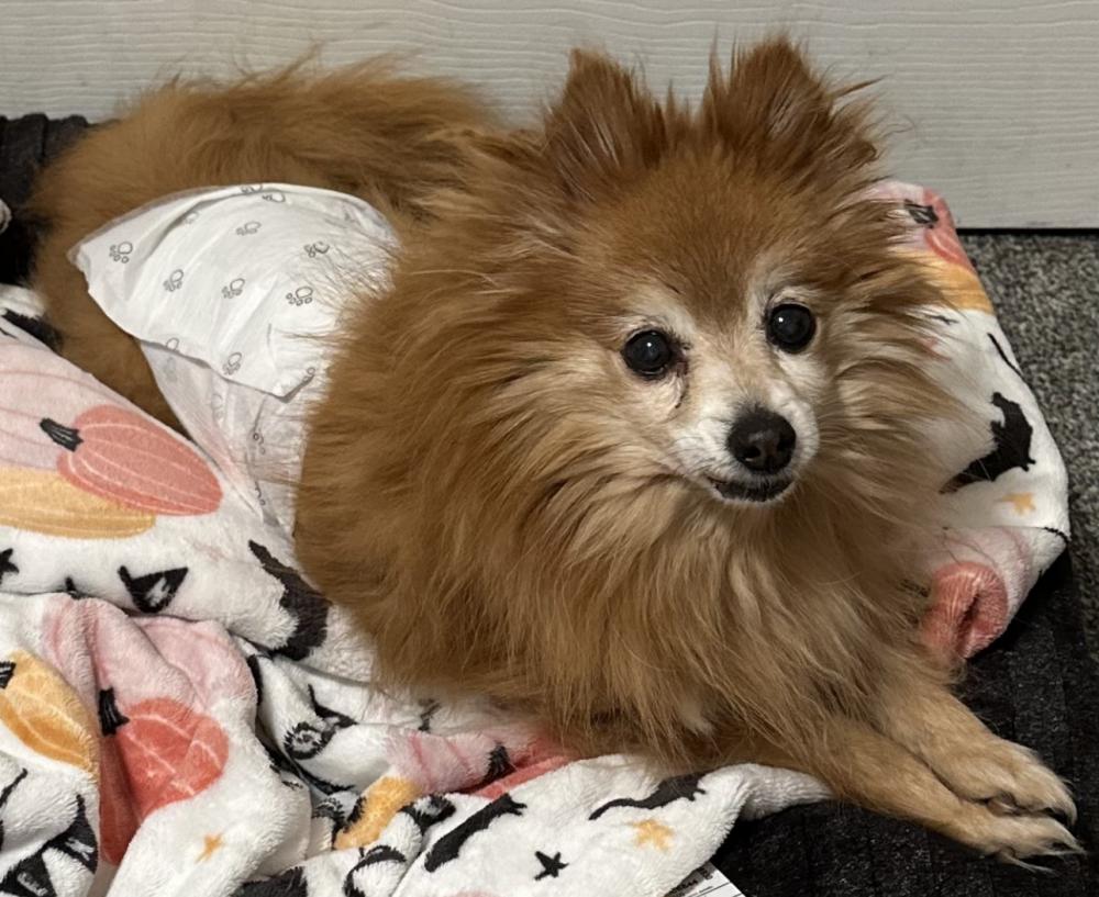 Pet Description:Brown, white face. Left with a white diaper on, might still have it on |