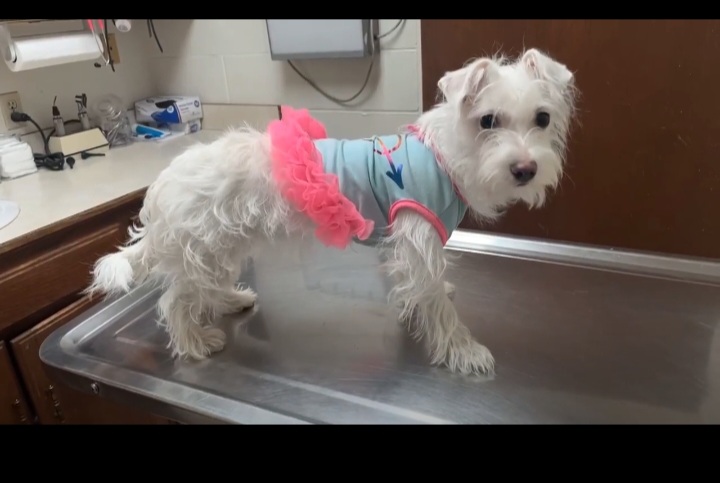Pet Description:Zoomie has a tiny rash on her left side armpit/side area. She has goldish brown hairs mixed in her chin area and a light pink color in her nose mixed with black! |
