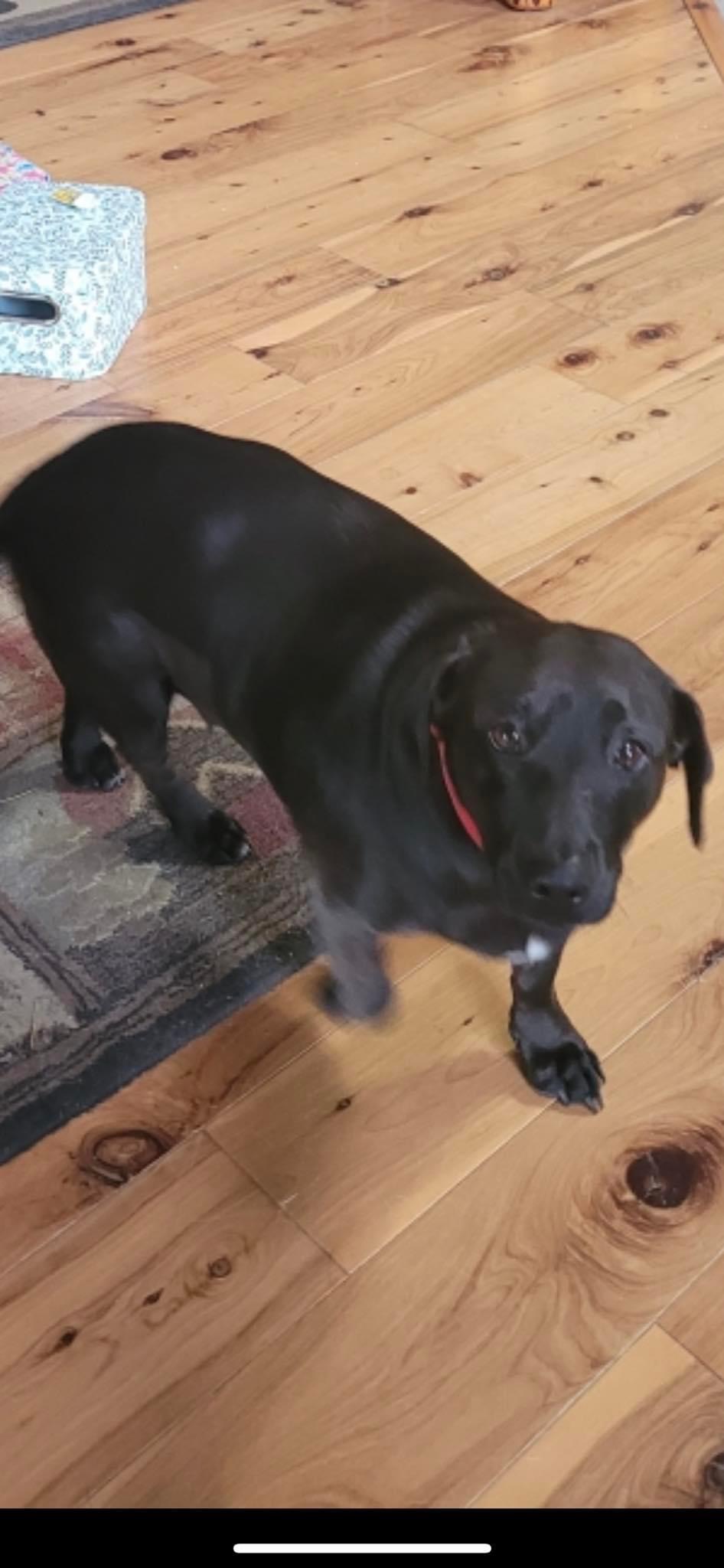 Pet Description:Black Dachshund- 30 pounds. White spot on chest in the shape of a sideways heart. Had babies about 4 months ago and is noticeable in the breasts. |