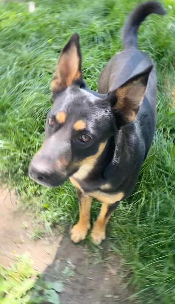 Pet Description:45-55 llbs, he was not wearing a collar, he is a medium sized dog, very friendly and follows people around, he loves playing with water, only understands spanish, his tail is most if the times curled upwards, |