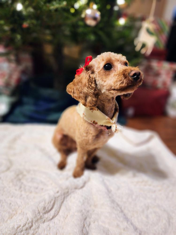 Pet Description:She's 5.5lbs. Super friendly and sweet. Red mini poodle but looks more golden. |
