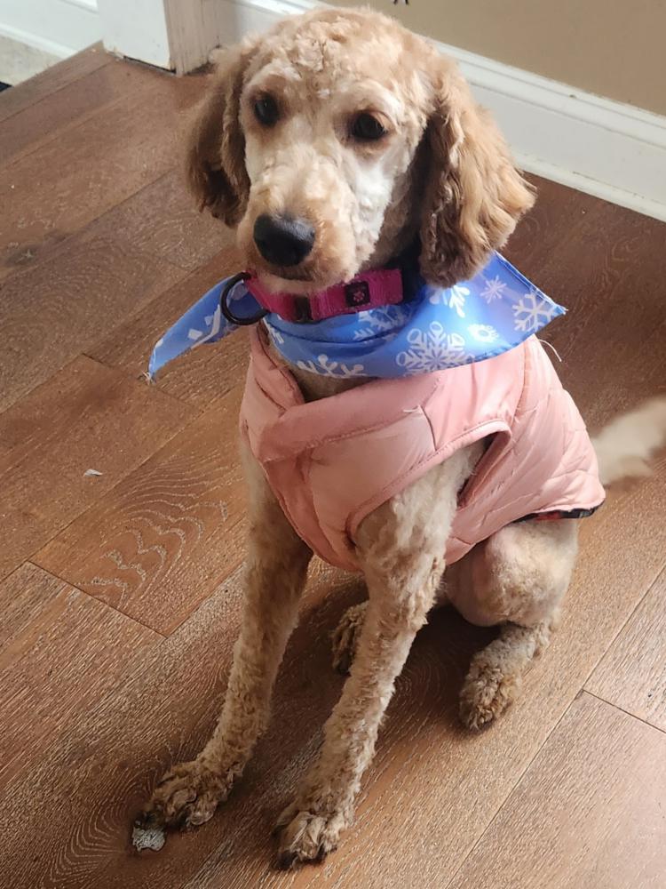 Pet Description:Bella is a mini Golden doodle. She is micro chipped, but was not wearing her collar with tags when lost. She is very sweet and friendly. She may be skiddish and scared now.....she was last wearing a bandana only. Our neighbors said they witnessed a car pick her up on clapboard ridge road. Please help our family ?? |