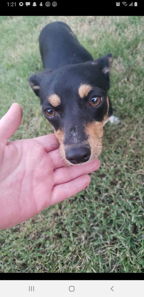Pet Description:Dog was at my front door. Appears to have injury to tail. No collar. Male dog, looks like daschund mix. Black with golden brown and white. |