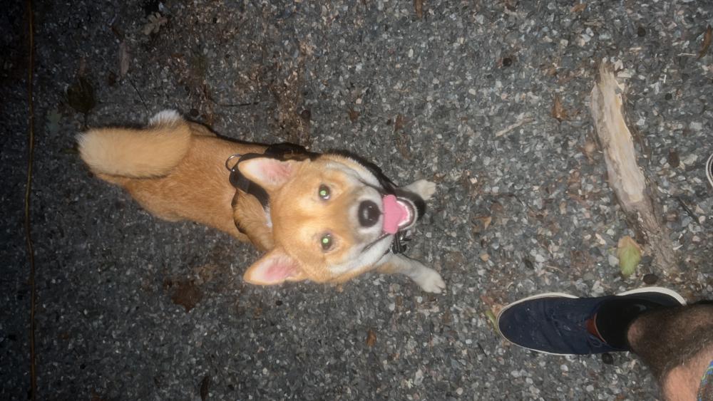 Pet Description:My dog is 8 months old red and has a body harness and collar with his tags on it and my phone number on it. |