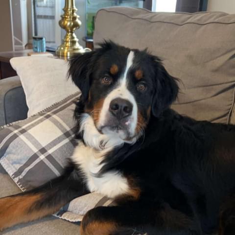 Pet Description:Waylon is a 75 pound Bernese Mountain Dog with normal Bernese coloring. Mostly black all over with white and brown on his paws, tip of tail, face and belly. |