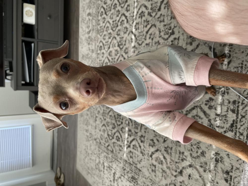 Pet Description:Half miniature pincher, and Chihuahua mix. Brown and gray color. Very small. |