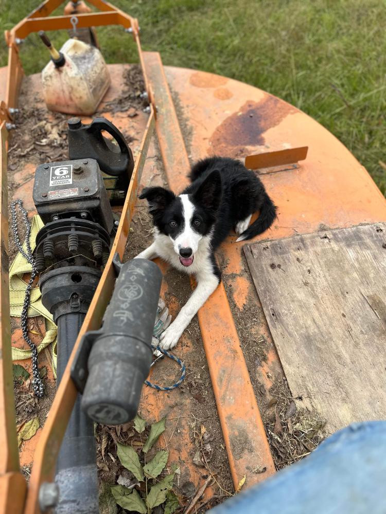 Pet Description:Young border collie. Black with white neck and front legs and back feet. Black ears and around eyes. |