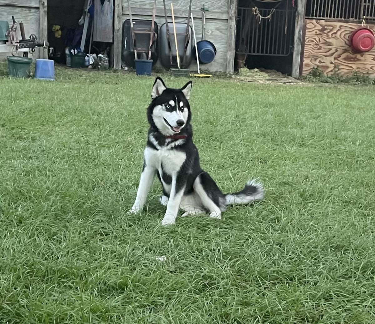 Pet Description:Black and white Blue eyesWas wearing a light pink collar |