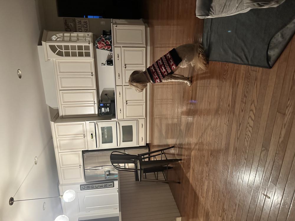 Pet Description:Lacey GirlShort hair cut Has on a Red White and blue dog polo She is very scared |