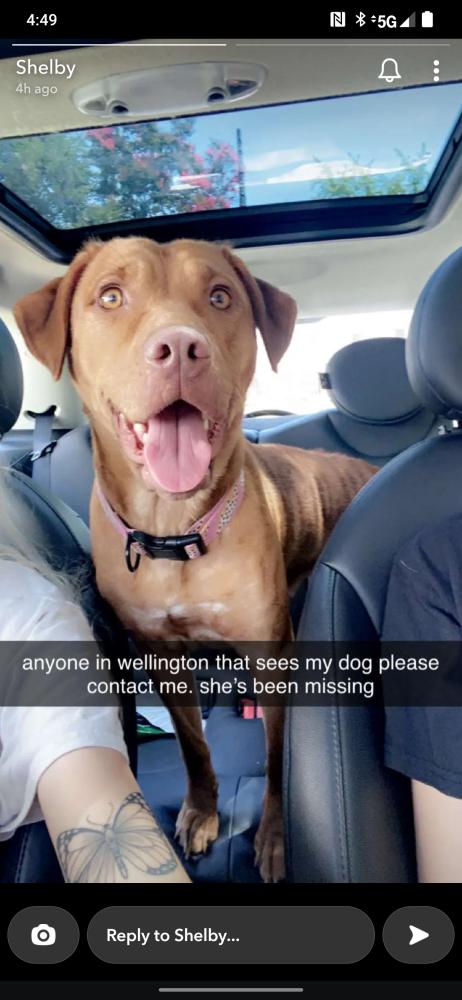 Pet Description:Brown and white pit/hound mix female shy but very sweet. Loves people. Has pink collar name is hazel (hazel bean). |