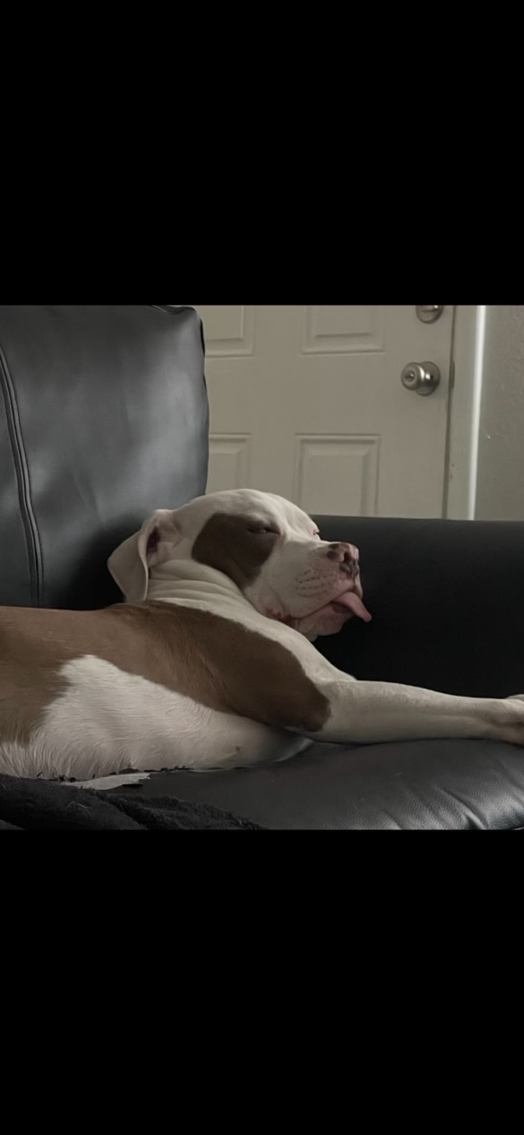 Pet Description:45lb pitbull mix puppy, white and brown female |